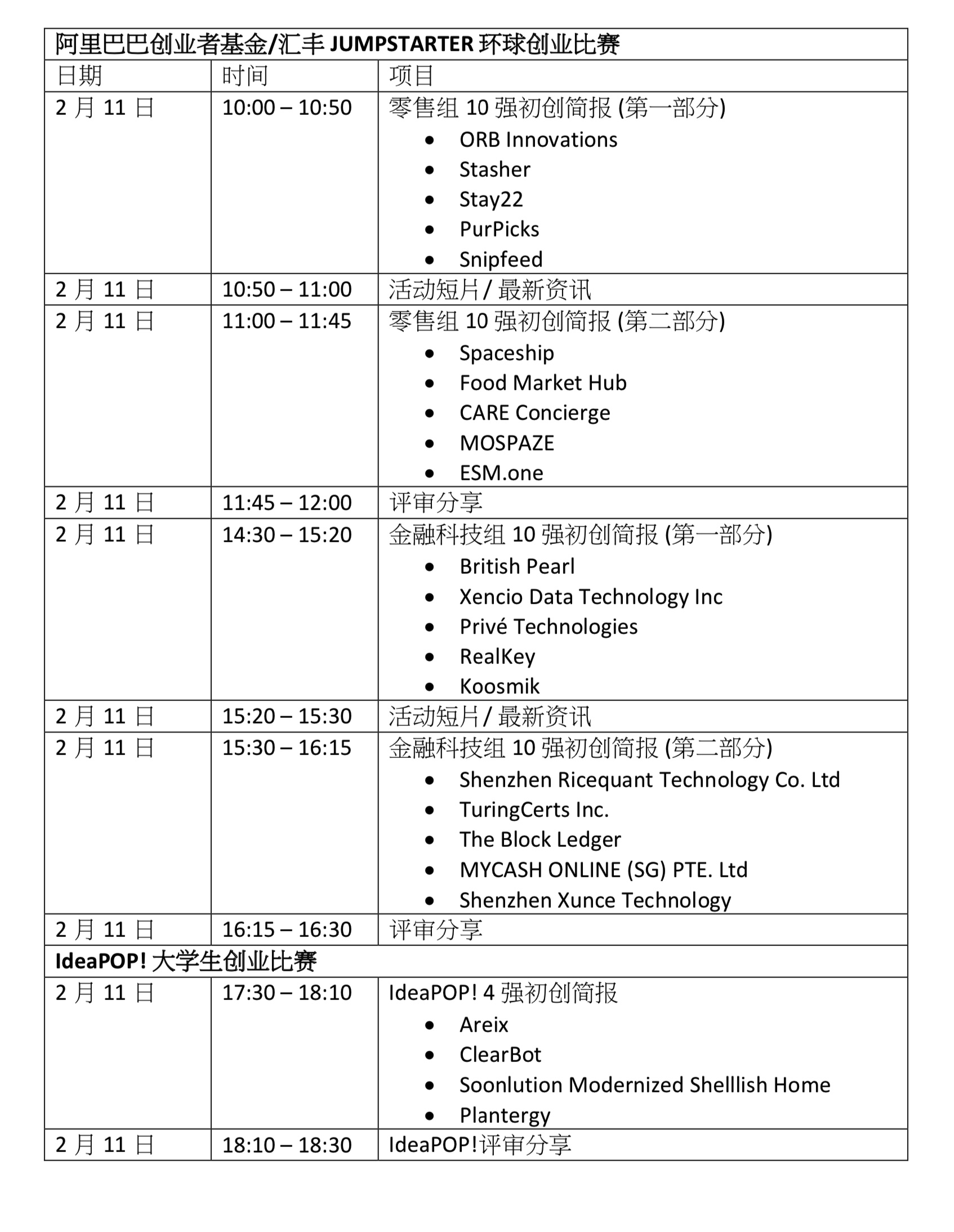 以下为第三届阿里巴巴创业者基金/汇丰JUMPSTARTER环球创业比赛的时间表: