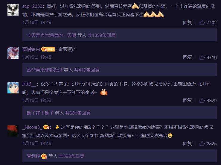 春节假期期间,《明日方舟》团队甚至连大型活动都没有策划,仅向全服玩家发放了一些游戏资源作为福利,在玩家间彻底引爆了舆论。在“明日方舟”官博近期的帖子下面,大概率能看到玩家在肆意地发泄着自己的情绪。