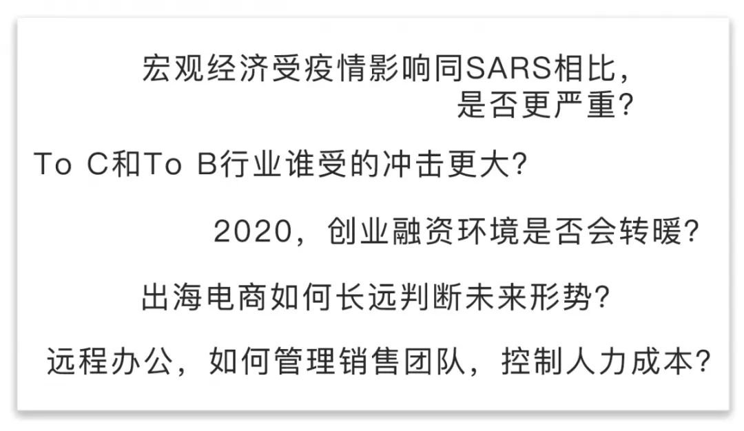 对于创业者来说,因为工作占的比重时间太大了,我觉得这些宏观的东西很难顾及。从不一样的角度看疫情,尽量发现这个东西跟你以前的生活和工作节奏有什么不一样的地方,尽量感受它美好的一面。对于所有创业者来说,宏观对我们的影响永远没有微观对我们来得大。微观是每天需要工作的内容和需要解决的问题,这些对于我们更重要。宏观对于我们来说,其实没有那么重要,有时候尝试“该干嘛干嘛”。该吃饭吃饭,该睡觉睡觉,该工作工作,该生活生活,其他的就顺其自然。
