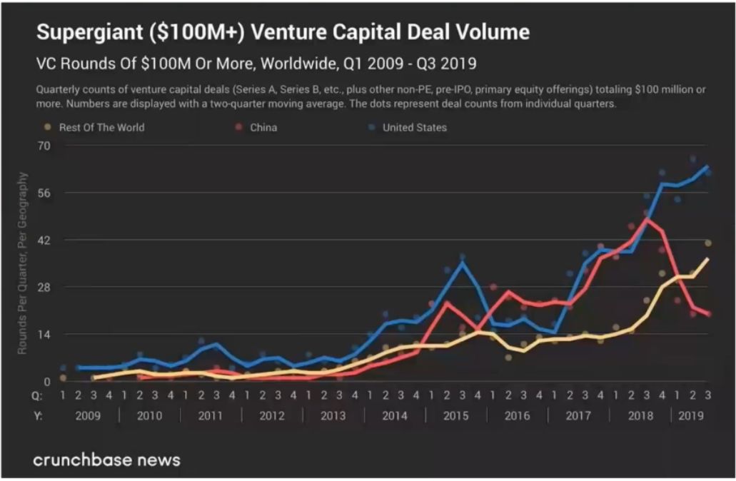 融资方面,我觉得倒不用那么紧张,因为肯定融资比较难,至少上半年融资比较困难。公司要储备12个月的现金这是常识,最好还能够自己造血。其实我自己最大的担心是这次会不会导致国际资本对中国的投资减少。2019年下半年,我自己已经明显感觉到国际资本对中国的投资减少,这一趋势2020年会不会加速,转而把钱投到东南亚和南亚去,这点是我自己没有想的特别明白,也是一直在思考的问题。还有一些其他层面的东西,比如说提前预测、随机应变,抓政府政策,抓住发展规律等。下面这张图反映从2019年开始融资就急剧的下降。