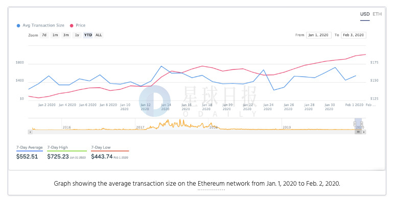 3.数据:年初至今,ETH平均交易规模增长122%