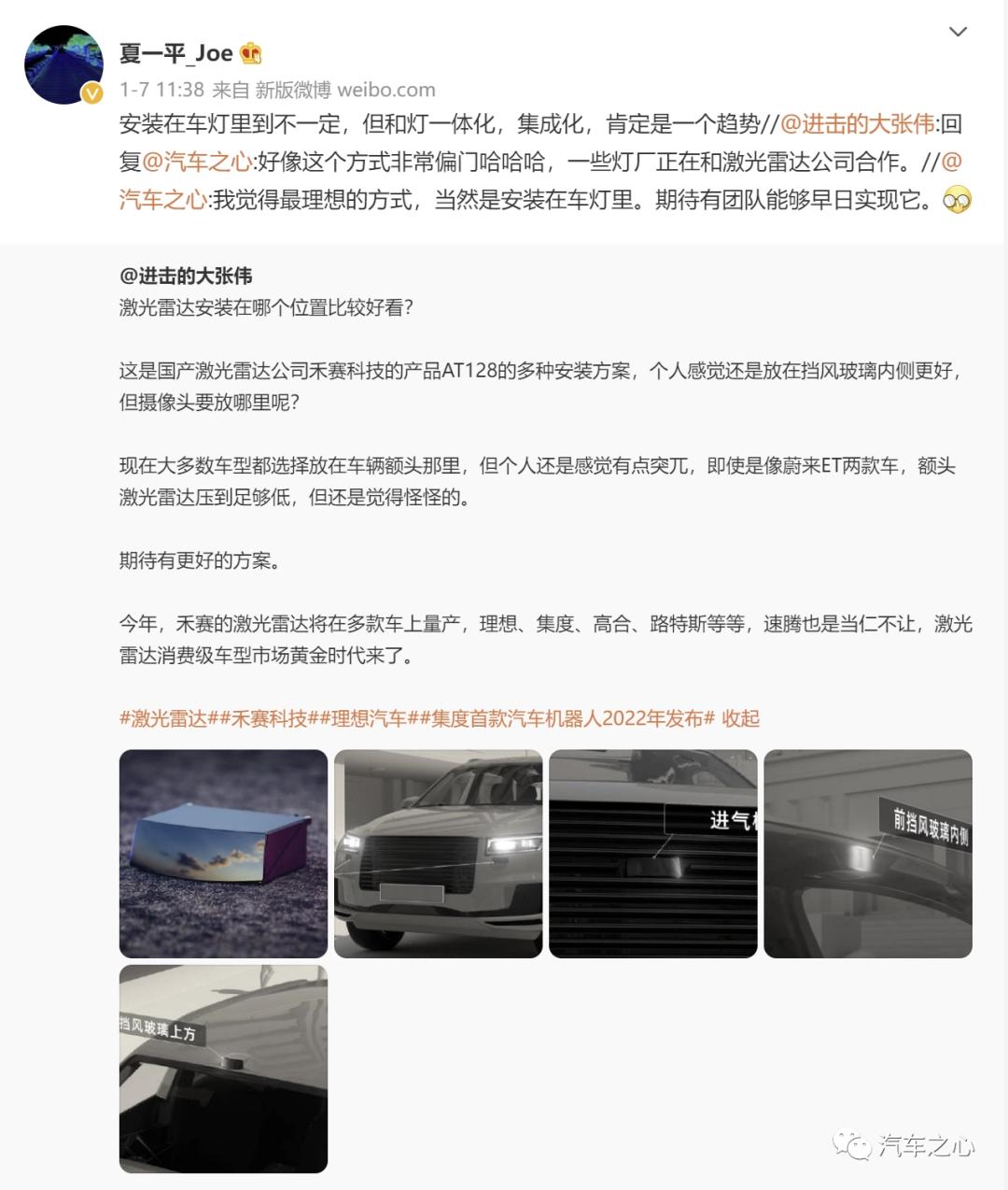 夏一平也曾回复汽车之心:将来激光雷达与车灯合为一体化、集成化肯定是一个趋势。