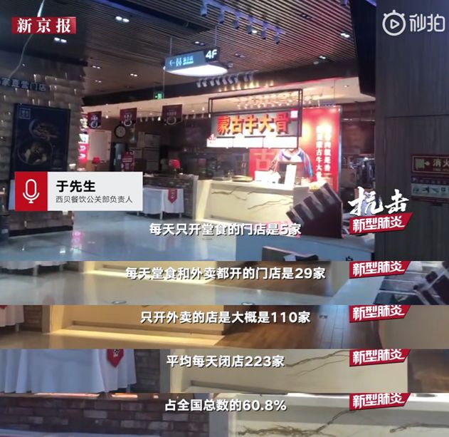再比如西贝,截至 2 月 9 日,全国 367 家门店中,223 家闭店。5 家只开堂食(主要为机场店),29 家有堂食 + 外卖,110 家仅有外卖。