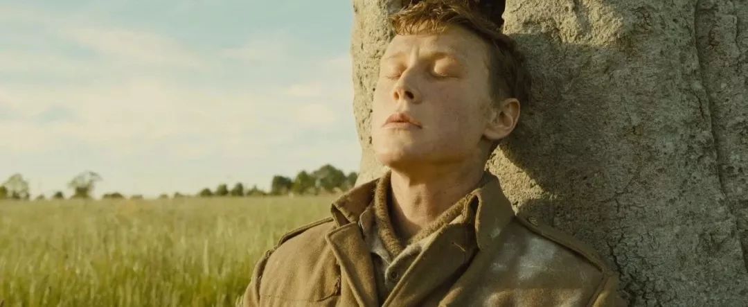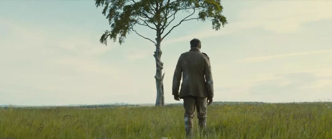 但《1917》同样也在呼唤柔情。因为哥哥在前线性命攸关,布雷克在执行任务的途中多了一丝超越稚气性格的英勇;斯科菲尔德将自己的食物和牛奶全部留给了饥饿的法国女人和她的婴儿;在性命结束的最后一刻,布雷克将家人的照片死死捂在胸口前;完成任务和队友的嘱托后,斯科菲尔德倚树休憩,阳光撒在他的脸上,也照亮了相片背后的一行字:“come back to us”。