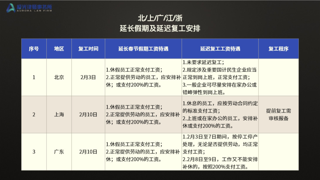 延迟复工期间工资待遇怎么付,各地要求都不一样,要关注企业所在地的具体规定:比如北京不要求2月3日之后继续延迟复工;上海则视3至7日为休息日,工作要付加班费。