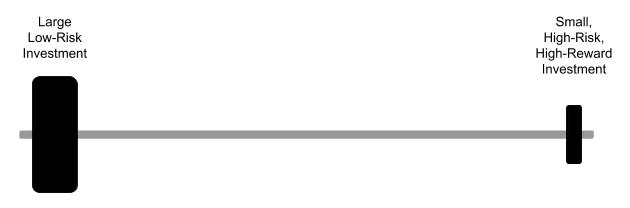 在投资领域,这种方法叫做 “杠铃策略”,因为你的做法,实际上在针对杠铃两侧的风险下注:你的朝九晚五工作,相对风险低,但也不会有大的起色;你的创业公司,风险就相对高,但也许会有大的翻盘。