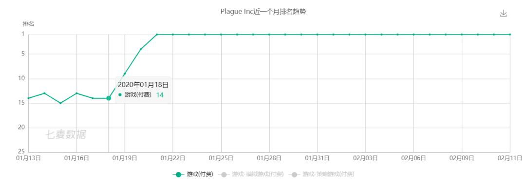 不仅仅是健身环,《瘟疫公司》受疫情的影响更是显而易见,自今年1月15日疫情相关信息蔓延开来以后,《瘟疫公司》很快登顶App Store付费榜。到目前为止,这款模拟病毒蔓延全球的游戏,已经霸榜21天。