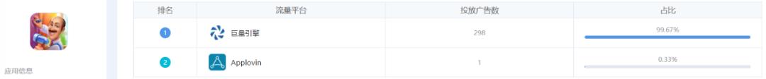 《梦幻家园》的广告投放占比,数据来源:App Growing
