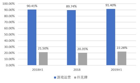公司游戏业务毛利率也显著高于扑克牌业务,2019上半年游戏毛利率达91.4%,而扑克牌业务毛利率只有22.28%。