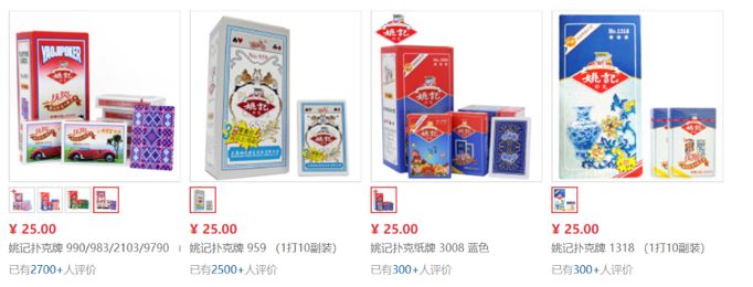 ▼ 姚记扑克京东旗舰店部分在售扑克牌