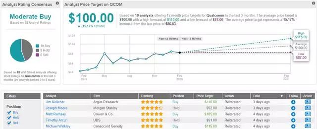 摩根大通(JPM) 4星分析师萨米克•查特吉(Samik Chatterjee)在有关高通股票的报告中将这些观点结合在一起。他写道:“我们要向投资者强调的解决这些担忧的关键点包括:1)5G内容的增长,这是高通股票牛市的根本驱动力,它仍然是完整的,并超出了预期;2)短期内严峻的销量前景更多地反映了当前的市场状况,而当前的市场状况可能会导致智能手机行业在第三季度的销量同比下降;3) QTL和QCT业务的毛利率正在改善,而公司毛利率的总体增长完全受到QTL和QCT收入组合的推动。我们仍然看好5G的内容机遇。”