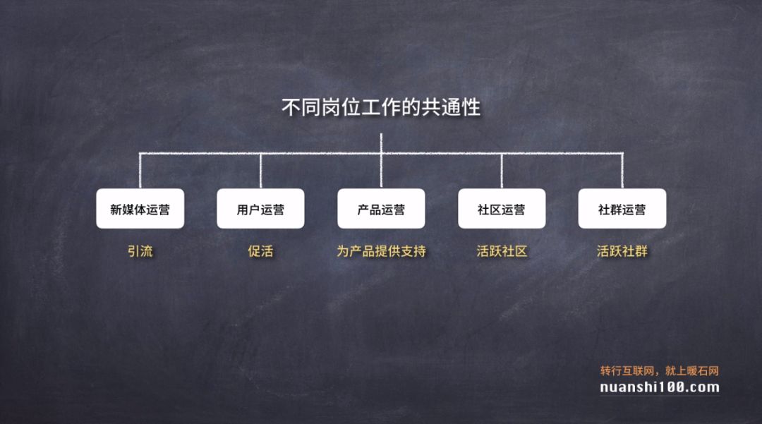 所以不管你选择的是哪个运营岗位,工作是有一些共通性的,所以在转行的开始,我们并不需要纠结到底做哪个细分岗位,因为想做好任何一个岗位,都得横向学习其他岗位所需要的一些通用技能,否则你的工作是很难开展下去的。