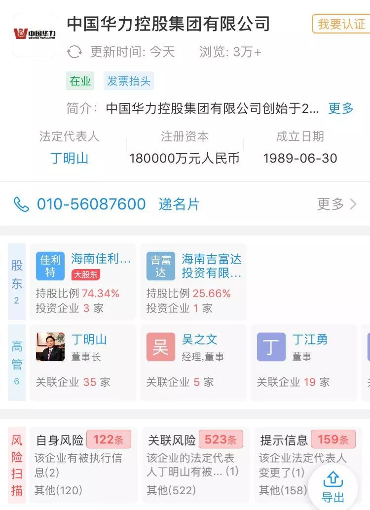 企查查风险扫描显示,华力控股目前面临自身风险122条,关联风险532条,亦有不少股权质押和股权出质的情况。