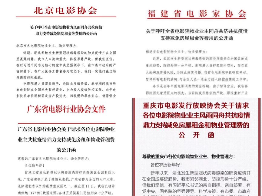 一方面,截至目前为止,包括重庆市电影发行放映协会、北京电影协会、福建省电影家协会、广东省电影行业协会等在内的多家影视机构,已经开始相继发布公开函,呼吁电影院物业主减免租金。同时,行业主管部门也委托电影艺术研究中心,针对疫情造成的行业影响展开调研。据悉,一些帮扶政策即将陆续出台。