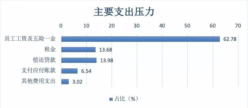 “62.78%的企业认为“员工工资及五险一金”是疫情期间企业主要的支出压力”