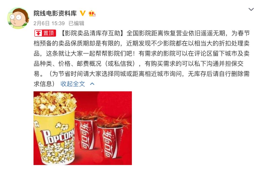当然,位于整个产业链终端的放映环节也是受此次疫情影响最为严重的部分,大盘数字停止跳动了多少天,影院们就跟着关门了多少天,最近也可以看到如苏宁、大地等影城迫于无奈将库存商品进行线上售卖,但这项微乎其微的回本方式对于影院成本的大量流失也是九牛一毛。