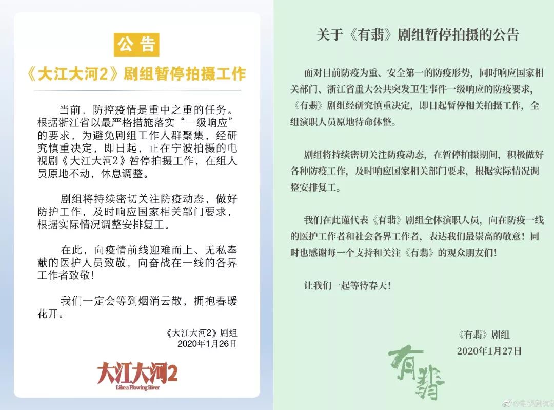 除网络公示信息中《大江大河2》《有翡》等剧组停工,采访中春秋时代董事长吕建民也表示,自己公司目前正在筹备当中的两个项目都在不同程度上受到影响,一部是雇佣兵题材的军事动作片《佣兵》,按照正常计划,影片已经完成了在哈萨克斯坦、巴基斯坦等国家和地区的勘景工作,年后剧组就会启动拍摄,但目前拍摄计划可能要延后;另一部与中央政法委接洽、五百导演合作的扫黑题材影片《扫黑》也是类似情况。