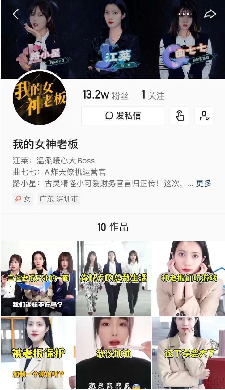 除此之外,硬糖君还惊奇地发现,不仅有单女主的,还有多女主的!《我的女神老板》仅更新了10集短剧,该账号1月30号开始上传第一集,截止到2月7号已经超过13万粉丝……这个剧仍然以第一人称视角讲述了“我”与三个人设各不相同的女神老板在一起发生的办公室故事。