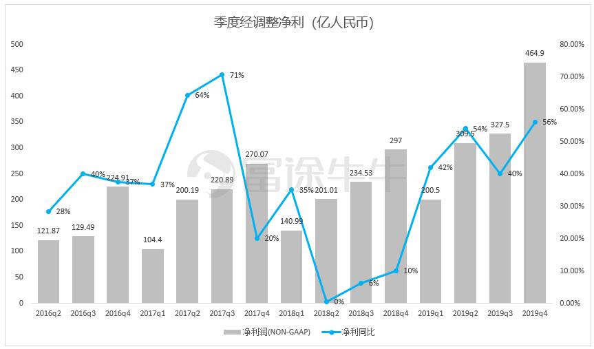 Non-gaap净利同比增56%,达到464.9亿,再创季度新高。