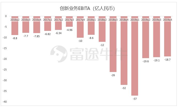 在核心商业中,2019Q4「四新业务」(亏损由大到小为本地服务、lazada、新零售、菜鸟)经营亏损82亿,环比有所扩大。而大文娱的亏损有所扩大,创新业务的亏损也未见明显改善。