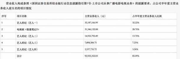 欢瑞2019中期报告披露主营业务收入前五项目