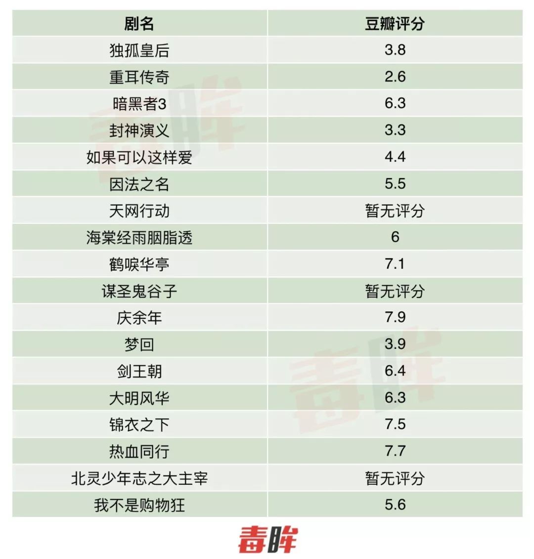 18部积压剧豆瓣分数未过及格线的占了七成