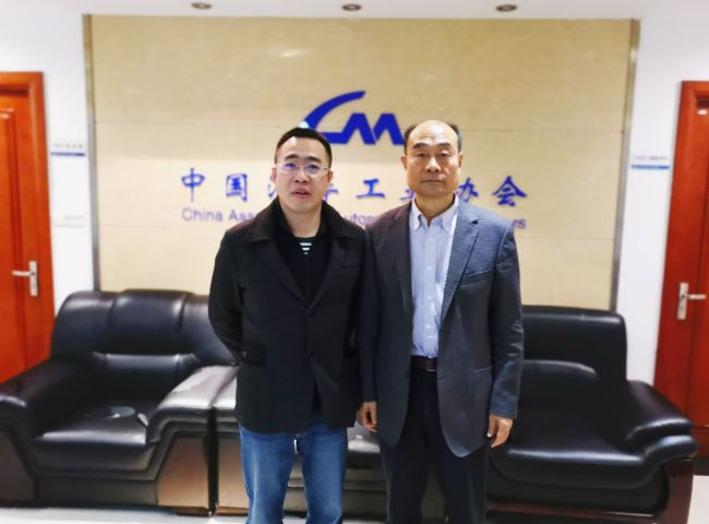 车云网、电动邦创始人程李(左)与中国汽车工业协会副秘书长师建华(右)合影