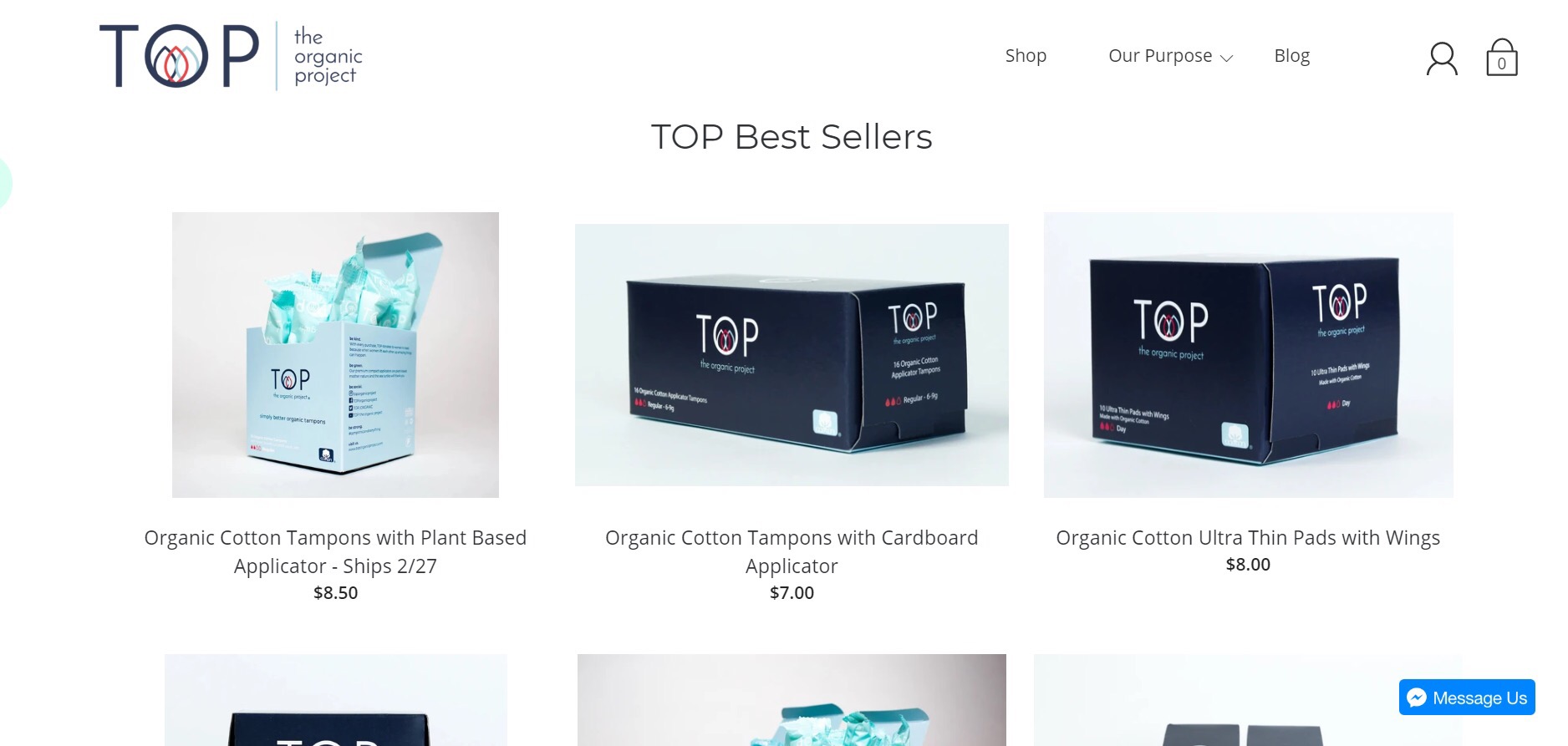 TOP 是一个有机棉条产品品牌,总部位于美国马萨诸塞州,由 Denielle Finkelstein 和 Thyme Sullivan 联合创立,旨在为女性提供可生物降解的卫生棉条。