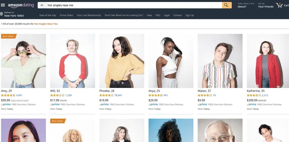 是不是有点迫不及待想试一试?很可惜,它是假的,就像情人节前夕的愚人节游戏。这个以亚马逊名义推出的约会平台,其实和电商巨头没有半毛钱关系。
