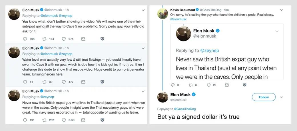 几天后,马斯克删除了那些推文,并发了三心二意的道歉。但是伤害已经造成。他的帖子已被截图、分享、转评,被数以百万计的人看到。这些他没法撤回。