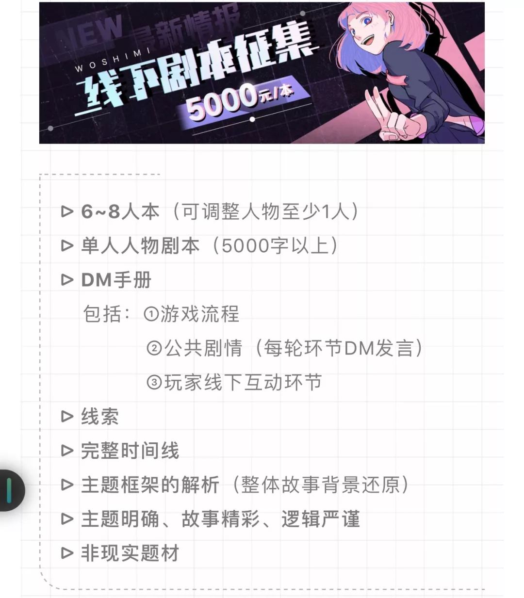 产业上游是剧本作者,因为每个人一个剧本只会玩一次,所以剧本是消耗品,需要源源不断的供给。
