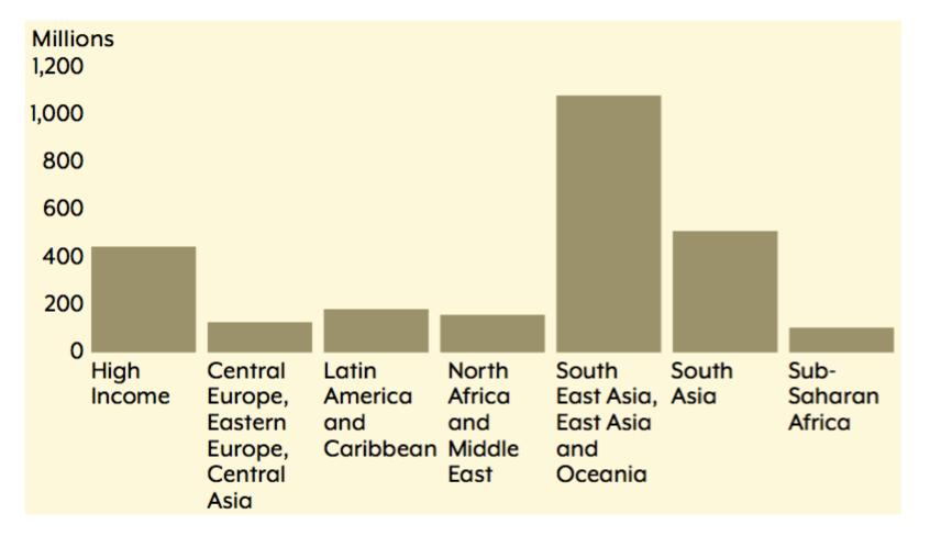 于是,环境的影响开始被考虑在内。比如现在提到近视,特别是青少年近视,人们普遍会将其归咎于沉重的课业负担,世界卫生组织的报告中也支持了这种观点,报告显示亚太地区高收入的国家近视率最高,达到 53.4%,西亚以 51.6% 紧随其后,课业繁重的中国和韩国的城市青少年近视率更是高达 67% 和 97%。