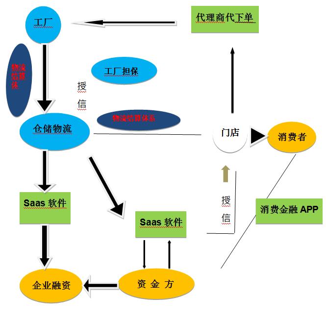 平台依托云订货系统+巧虎自由结算系统,帮助上游企业完善进销存管理,财务管理,仓储物流管理,渠道优化。同步工厂下游代理商彻底实现线上化采购,下订单、以山东济南为基础建设仓储辐射全国,实现物流可视化。同时,各大金融机构认可系统数据流真实性,使企业可以充分借助金融的流动属性完成授信,线下专业风控团队完成面审和催收。缓解采购商进货压力大,资金流动性,地区仓储成本过高困难等问题,加固供应链单位的公信力。