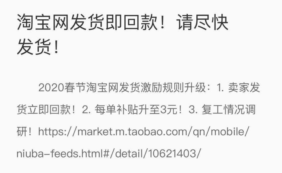 拼多多和淘宝网等电商平台,先后发布了激励商家发货的规则,拼多多商家后台提出将对在疫情期间坚持承担物流补贴成本、维持运营和发货服务消费者的商家给予补贴,每笔订单将补贴奖励金2-3元。并且该补贴不设上限,目前平台已经划拨出10亿元首批专项补贴资金。