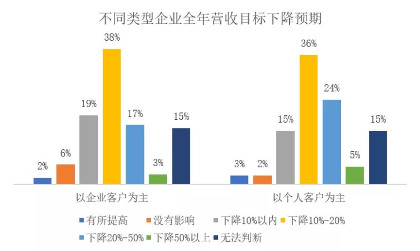 清华经管学院调研,以个人客户为主的零售业,预计36%的企业全年营收下降10%-20%,24%的企业全年营收下降20%-50%。