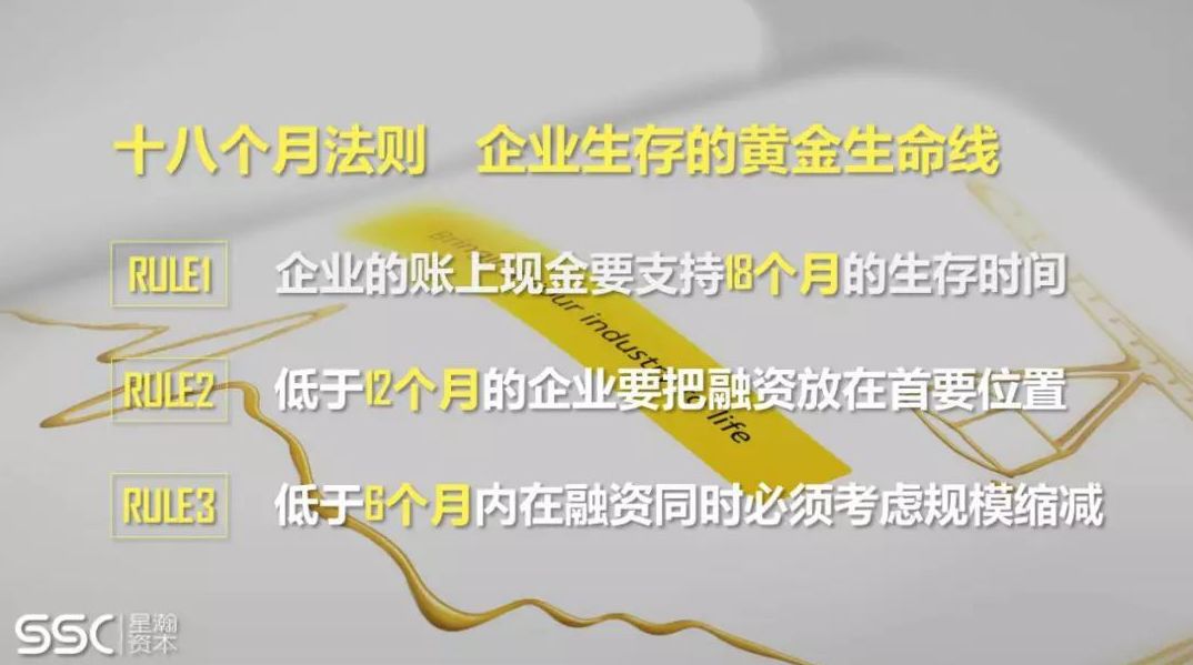 面对此次疫情,我们需要记住一个很重要的法则——“十八个月法则”,它是企业生存的黄金生命线。十八个月法则最早来自于硅谷,有三个分定理: