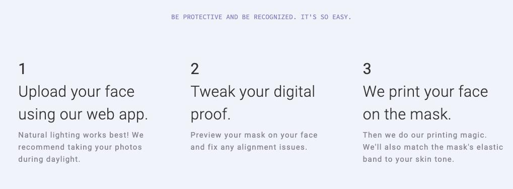 简单来说,Danielle Baskin 想做的就是将你脸被挡住的部分打印在 N95 口罩上。这样即便戴起口罩,从外面看你的脸依旧是完整的。