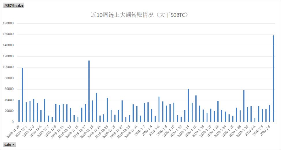 根据 Chain.info 提供的链上数据,我们发现,近十周内的链上大额转账(大于 50 BTC)和链上转账总额都没有大幅上涨。