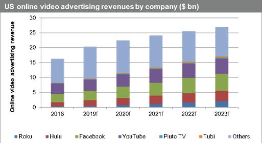 注:2018年到2023年,美国线上视频广告收益情况预测(来源:Informa Tech)