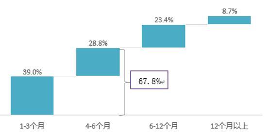 受疫情影响,购房计划会延迟多久?调查显示,消费者购房计划推迟时间普遍不超过半年。购房计划推迟1-3个月的比例最高,在6个月以内的累计占比达67.8%。