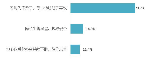 上述调查发现,要换取现金或担心价格下跌而降价卖房的业主较少,多数业主降价出售的意愿不强。对于开发商降价促销的活动,业主的态度也相对强硬,跟随降价的比例仅为29.7%,33%的业主维持原报价,更多的业主选择暂时不卖。可见,二手房业主对于卖房的迫切性比开发商低多了。