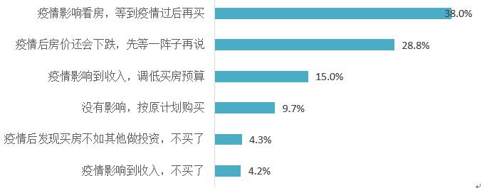 其中,有38%的受访者表示因疫情影响看房而暂缓买房计划,有28.8%的受访者认为房价会跌而暂缓买房。