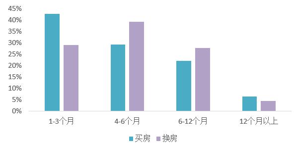 但是,换房者中换房计划推迟时间最多的是4-6个月,比买房者更长一些。主要是换房者手里有房,换房的急迫程度比买房者较弱。
