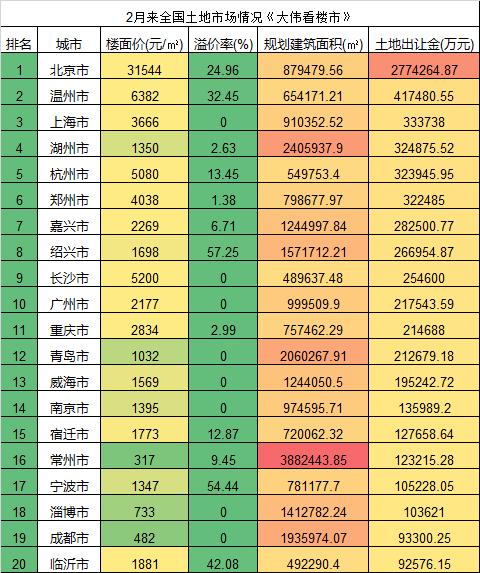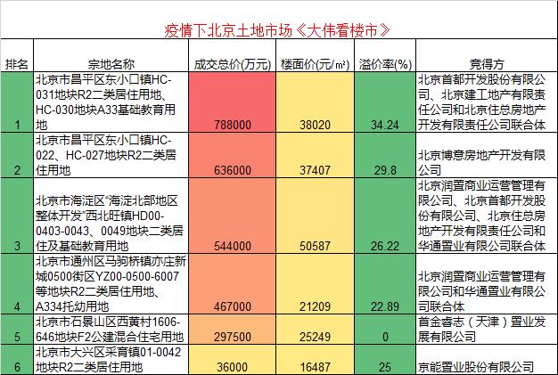 1:2月份,北京成交了多宗高溢价率土地!