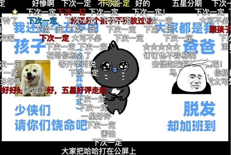魔性的配乐和歌词,瞬间在B站、微博等社交媒体引发了网友们的“愧疚”,纷纷表示,“下次一定给五星”。