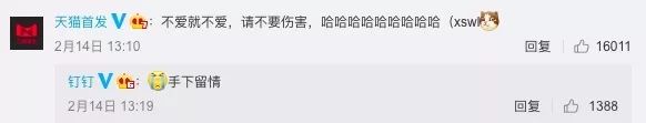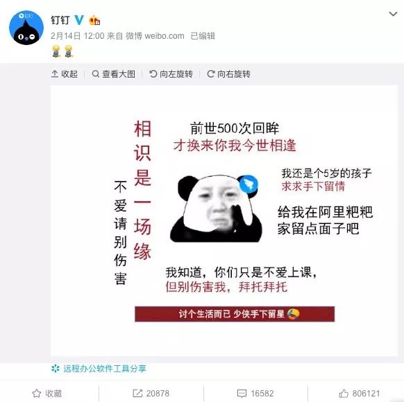 第一波,2月14日,钉钉官微通过一张DIY的表情图片来表示自己的无奈:“相识是一场缘,不爱请别伤害”、“我知道,你们只是不爱上课,但别伤害我,拜托、拜托”、“讨个生活而已,少侠手下留星”。
