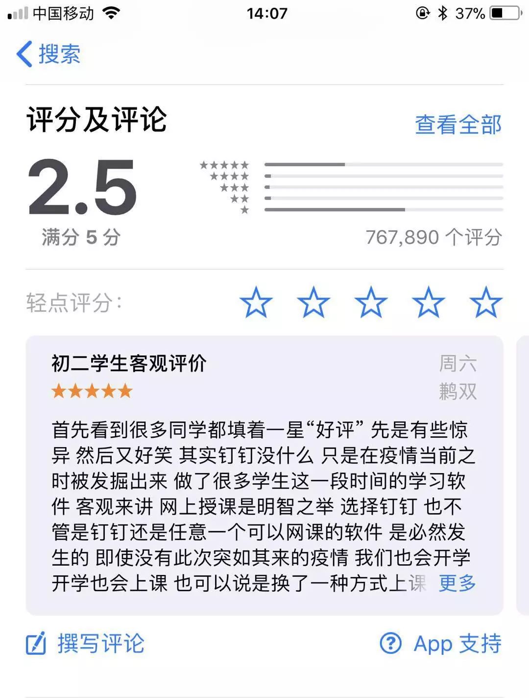 被小学生组团打一星,钉钉的这波公关操作堪称典范