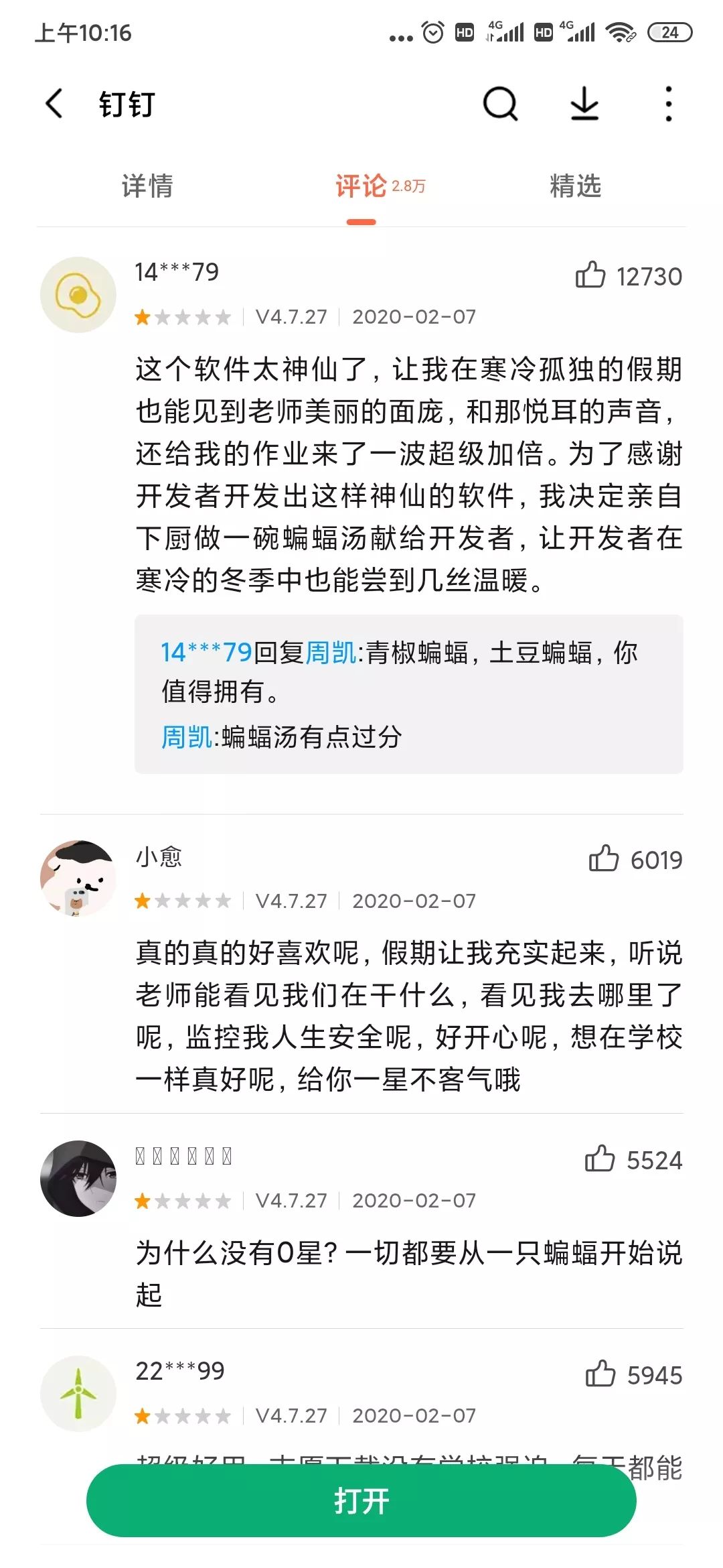 一时间,在各大app平台涌入了大量学生党送上一星“恶评”,各种无厘头低分理由让人哭笑不得。这导致短短数天之内,让本是4.6星的钉钉掉到了如今的2.5星。