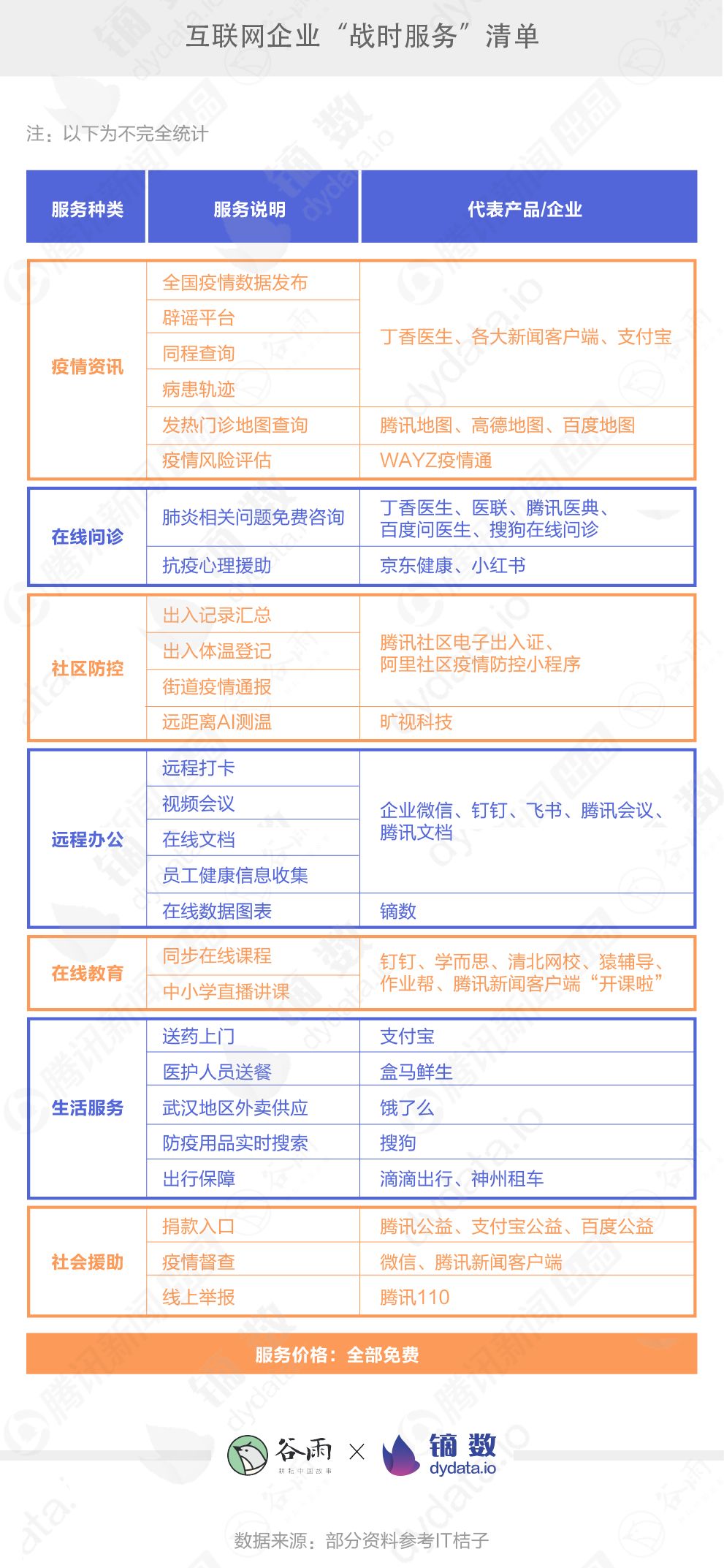 这场“战疫”中,各家互联网企业不仅捐的多,而且加班加点,充分发挥各自的技术优势,迅速推出疫情资讯、在线问诊、社区防控、远程办公、在线教育、生活服务等“战时”服务,保障人们的日常生活。