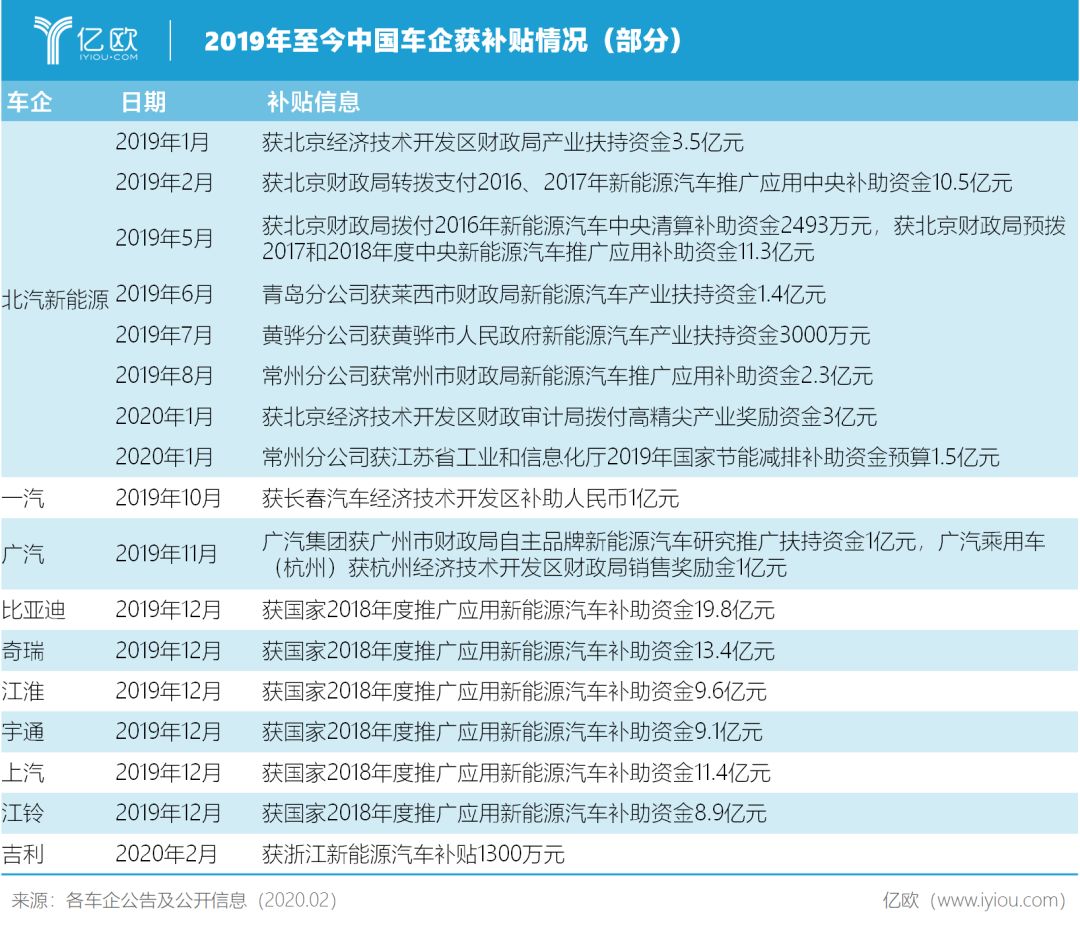 自2009年推广新能源汽车,并在第二年出台相关政策以来,各地方对新能源汽车都有大量的补贴。2019年至今,多家车企获得了数千万到数亿元不等的补贴。比如比亚迪,在2019年12月,获得了“国家2018年度推广应用新能源汽车”补助资金高达19.8亿元。